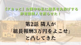 隣人 「年寄りはみんな組長やりたいんじゃないですか?」>> 前回のお話、第2話 隣人が「組長報酬3万円をよこせ」と凸してきた はこちら前回までのあらすじ介護の中、忙しいを理由に組長を拒否した隣人A家の代わりに組長2年目をやり切った私。だが何...